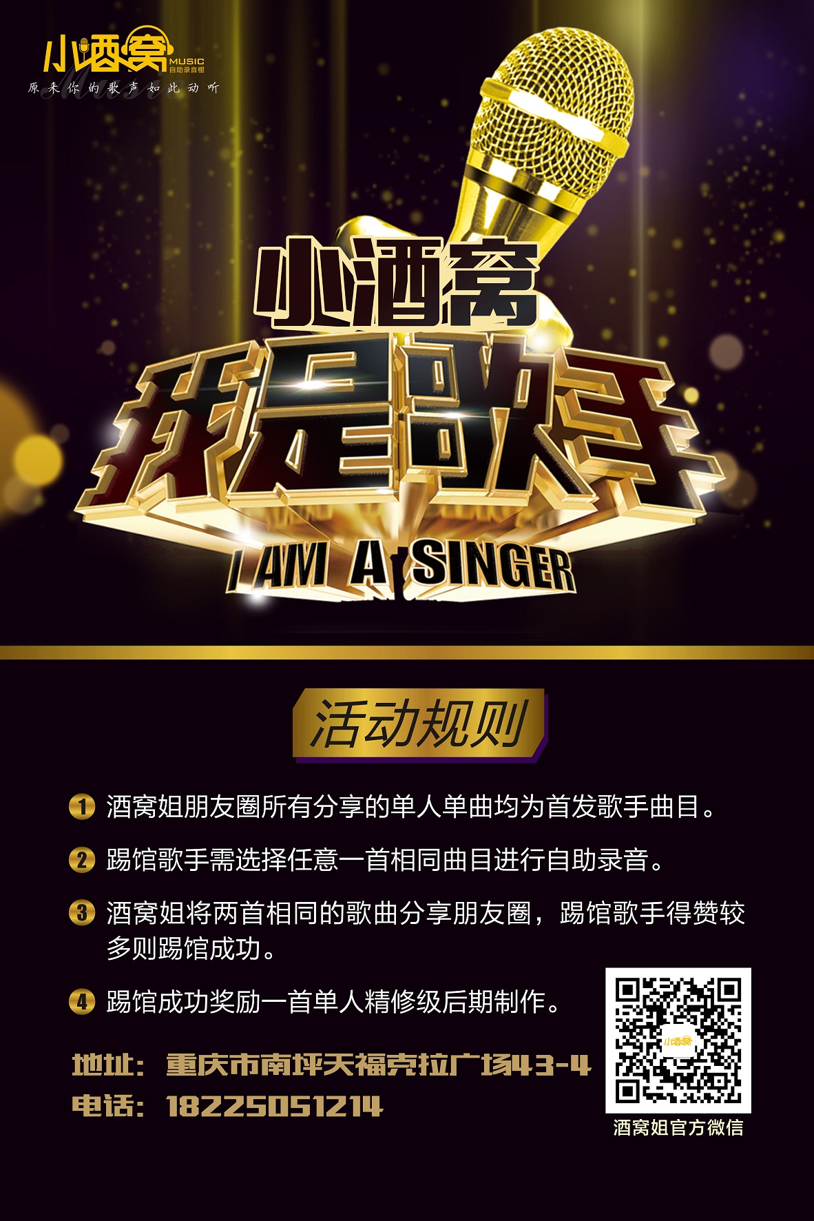 2016年01月29日 小酒窝录音棚2016年1月29日,小酒窝“2016我是歌手”挑战赛开赛。小酒窝自助录音棚不仅仅是一个录音的地方,更是一个以歌会友的大家庭。酒窝姐的朋友圈里面分享了好多你们的优秀作品,听到这些作品也许有的小伙伴会想“这首歌我比他(她)唱得更好”。这是一个敢想敢拼秀出真我的时代,如果你有这样的想法和实力,就来挑战吧!